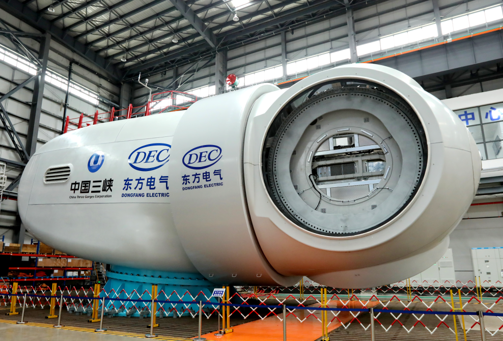 在水电领域,2021年6月28日,全球单机容量最大、在建规模最大的白鹤滩水电站首批机组顺遂投产发电。yl23455永利集团研制的左岸8台百万千瓦机组具有100%自主知识产权,实现100%国产化,所有产出重大部件和投运机组精品率100%,实现台台精品件件一流目的,开创巨型水电机组温差控制和摆度水平新纪元。电站建成后,年平均发电量624.43亿度,凌驾2019年北京市全社会用电总量(1166.4亿千瓦时)的二分之一,每年可节约标准煤约1968万吨,镌汰排放二氧化碳5160万吨,节能减排效益显著。