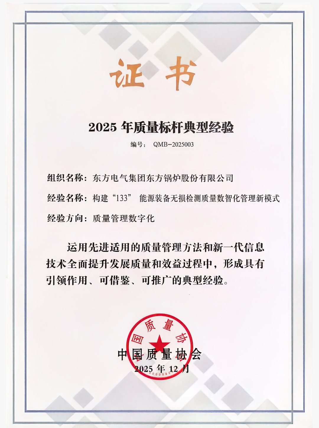¶«·½¹øÂ¯¡¶¹¹½¨¡°133¡±ÄÜÔ´×°±¸ÎÞËð¼ì²âÖÊÁ¿ÊýÖÇ»¯¹ÜÀíÐÂģʽ¡·×¤×ãÄÜÔ´×°±¸Çå¾²¿É¿¿ÐÔÒªÇó¸ß¡¢º¸½Ó½á¹¹ÖØ´ó¡¢¼ì²âÄѶȴóµÈÐÐÒµÌØµã £¬ÖÜÈ«¹¹½¨¡°Ò»¸öÄ¿µÄ¡¢ÈýÀà·¾¶¡¢Èý´óÖ§³Ö¡±µÄÖÊÁ¿¹ÜÀíģʽ £¬¾Û½¹¡°Öʼ췽·¨Êý×Ö»¯¡¢ÖʼìÀú³Ì×Ô¶¯»¯¡¢Ð§¹ûÆÀ¶¨ÖÇÄÜ»¯¡±Èý»¯Í»ÆÆ £¬Ê¹ÖÊÁ¿¿ØÖÆ´Ó¡°È±Ïݼì²â¡±Ïò¡°Î£º¦Ô¤·À¡±¡¢´Ó¡°ÂÄÀúÅжϡ±Ïò¡°ÖÇÄܾöÒ顱ϵͳԾÉý¡£