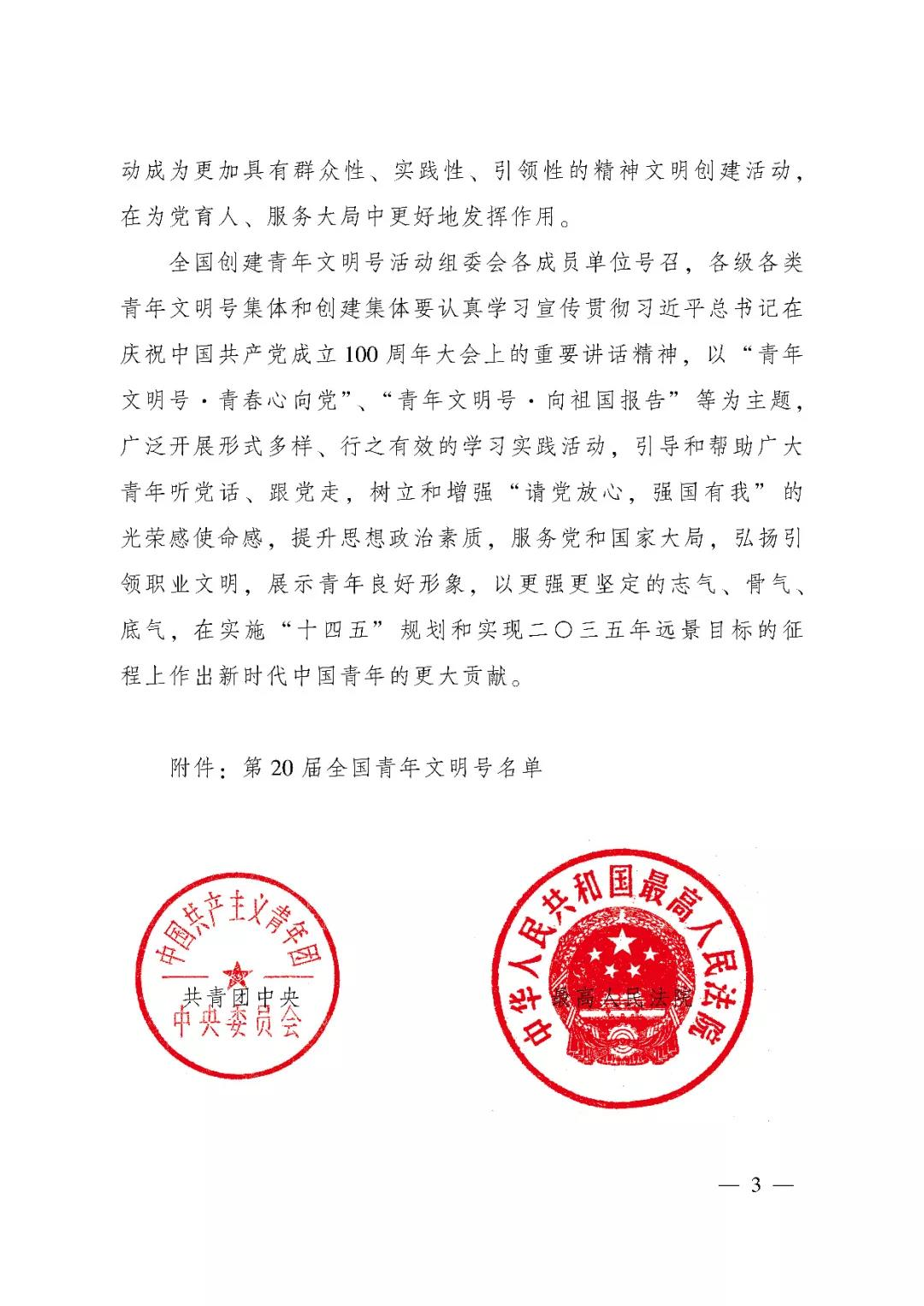 关于命名第20届天下青年文明号的决议