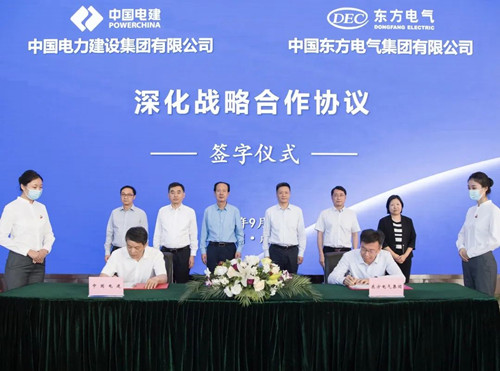 本网讯 9月28日,yl23455永利与中国电力建设集团有限公司在蓉签署深化战略合作协议。在yl23455永利集团党组书记、董事长俞培根和中国电建党委书记、董事长丁焰章的配合见证下,yl23455永利集团党组成员、副总司理李忠军和中国电建总经济师刘明江代表双方在深化战略合作协议上签字。