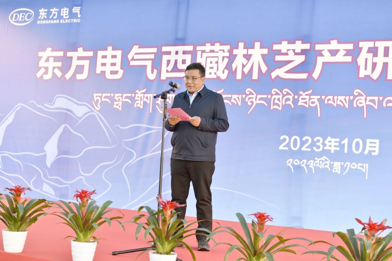 西藏农牧学院党委委员、副院长巩同梁在致辞中体现,西藏农牧学院将以产研基地建设为契机,进一步施展好专业优势、地区优势、人才优势,与各方携手推进西藏国家清洁能源基地建设。