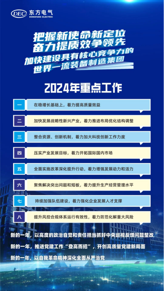 ÓáÅà¸ùÖ¸³ö£¬2024ÄêÊÇÂäʵ¡°ÁìÏÈÕ½ÂÔ¡±ºÍ¡°11256¡±Éú³¤Õ½ÂÔ£¬Íƽø¼¯ÍŹ«Ë¾×ªÐÍÉú³¤µÄÒªº¦Ö®Ä꣬×öºÃÕûÄêµÄÊÂÇéÓÈΪÖ÷Òª¡£È«¼¯ÍÅÒª¼á³ÖÒÔϰ½üƽÐÂʱ´úÖйúÌØÉ«Éç»áÖ÷ÒåÍ·ÄÔΪָµ¼£¬ÖÜÈ«¹á³¹Âäʵµ³µÄ¶þÊ®´óºÍ¶þÊ®½ì¶þÖÐÈ«»á¡¢ÖÐÑë¾­¼ÃÊÂÇé¾Û»á¾«Éñ£¬ÉîÈë¹á³¹Âäʵϰ½üƽ×ÜÊé¼Ç¹ØÓÚ¹úÓÐÆóҵˢÐÂÉú³¤ºÍµ³µÄ½¨ÉèÖ÷ÒªÐðÊö£¬ÈÏÕæ¹á³¹Âäʵϰ½üƽ×ÜÊé¼Ç¡°ºëÑïÄÑ¿°µÄ¡®¶«Æû¾«Éñ¡¯¡±¡°×öÅÅÍ·±ø¡¢×ßÔÚǰÏß¡±µÄÖ÷ÒªÒªÇó£¬ÕÆÎÕ¹ú×ÊÑëÆóÐÂʹÃüж¨Î»£¬ÍêÕû¡¢×¼È·¡¢ÖÜÈ«¹á³¹ÐÂÉú³¤ÀíÄ¸üºÃ·þÎñ¼ÓËÙ¹¹½¨ÐÂÉú³¤ÃûÌá¢ÍƽøÐÂÐ͹¤Òµ»¯£¬¼á³ÖÎÈÖÐÇó½ø¡¢ÒÔ½ø´ÙÎÈ¡¢ÏÈÁ¢ºóÆÆ£¬ÔöÇ¿½¹µã¹¦Ð§¡¢Ìá¸ß½¹µã¾ºÕùÁ¦£¬Âäʵ¡°ÁìÏÈÕ½ÂÔ¡±£¬Ç¿»¯Á¢ÒìÇý¶¯£¬ÌáÉý¾­¼ÃÐ§Òæ£¬Ò»Á¬Íƶ¯¼¯ÍŹ«Ë¾¸ßÖÊÁ¿Éú³¤£¬ÊµÏÖÉú²úı»®ÖʵÄÓÐÓÃÌáÉýºÍÁ¿µÄºÏÀíÔöÌí£¬¼ÓËÙ½¨Éè¾ßÓн¹µã¾ºÕùÁ¦µÄÌìÏÂÒ»Á÷×°±¸ÖÆÔ켯ÍÅ¡£