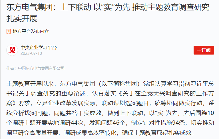 在调研中,聚焦突出矛盾和问题,集团总部和各企业多维互动、同向发力,形成解决问题的强盛协力。集团党组针对调研中发明的重难点问题制订8个专项整治计划,形成一名党组成员牵头认真、一个职能部分统筹推进、多个相关部分细密配合的“11N”问题解决模式,确保问题到期能整改、整改有效果、效果可坚持。针对集团开放式立异融合式立异需要跨越式结构的问题,研究制订集团立异研发机构管理指引;针对本钱管理系统不敷健全、本钱管理能力有待提升的问题,经由详尽调研,研究提出健全本钱管理机构、强化本钱管理人才步队建设等步伐;针对人才生长体制机制刷新还需一连深化并实现重点突破的问题,启动“人才特区”事情计划制订事情。通过制订可执行的步伐、设定可量化的目的、明确出效果的时限,确保问题整改有实效、见实绩。