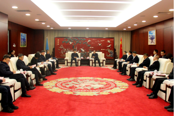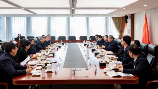 俞培根与中核集团党组书记、董事长余剑锋就配合服务国家战略、进一步深化双方战略合作、拓展合作领域、增强资源协一律举行了友好交流。中核集团党组成员、副总司理申彦锋,党组成员、总会计师王学军加入谈判。