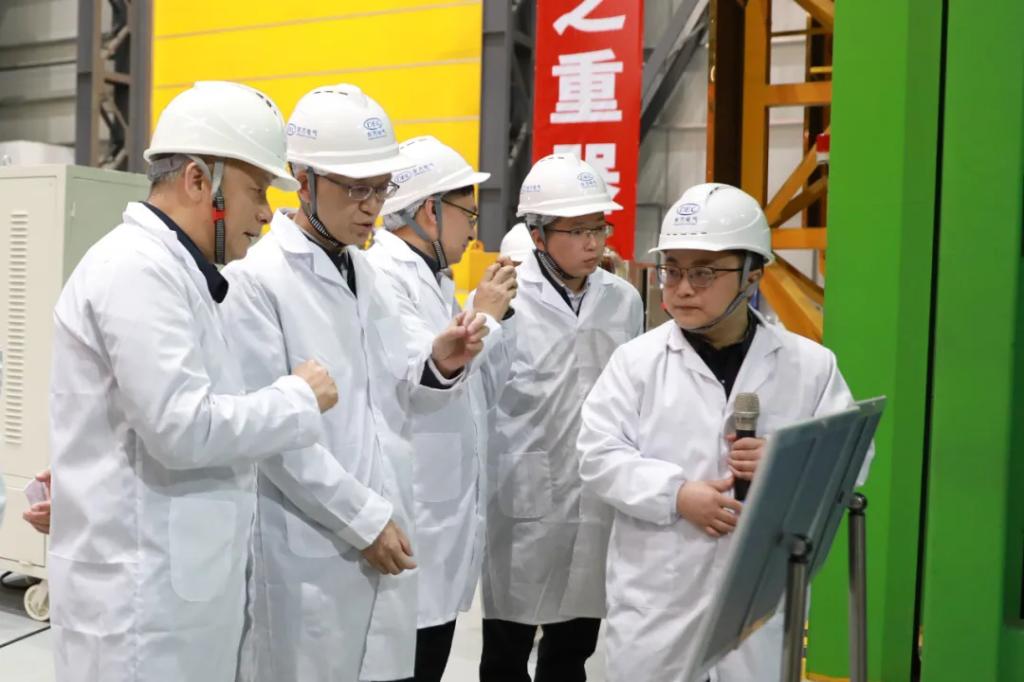 股份公司副总裁但军,集团公司相关职能部分认真人,东方重机向导班子成员及相关职员陪同检查。