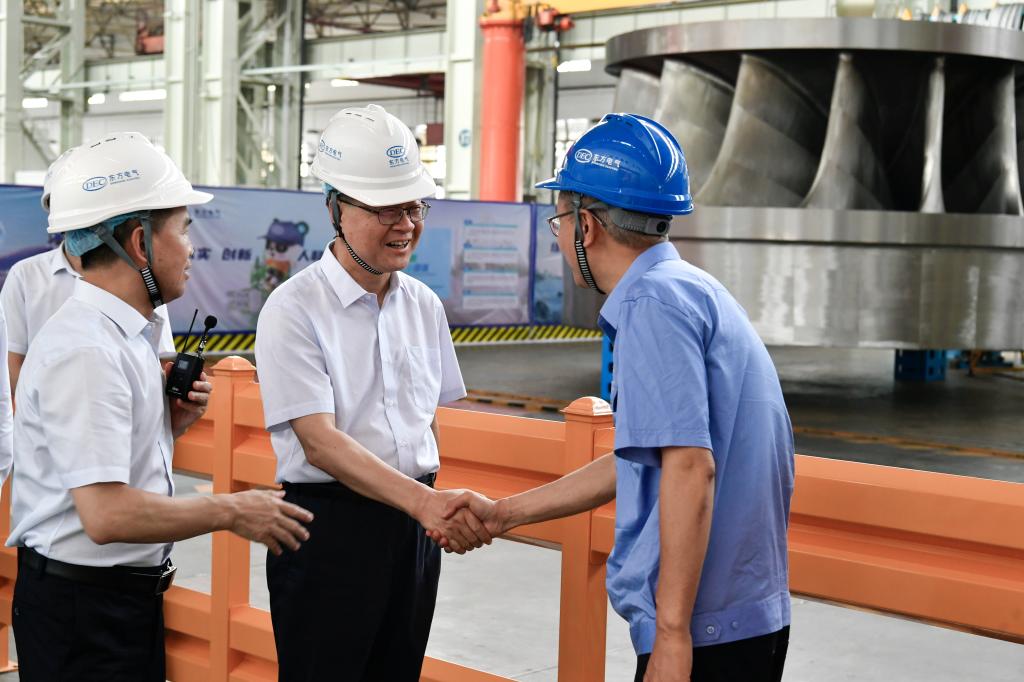 罗乾宜深入东方电机重型装备制造数字化车间、大型发电机生产车间、屏障泵事业部、绿色智能焊接数字化车间、定子冲片绿色“无人车间”、水力试验室、“东电印迹”工业历史文化园,实地调研东方电机生长历程、项目履约、车间工艺结构、智改数转、科研平台建设等情形。